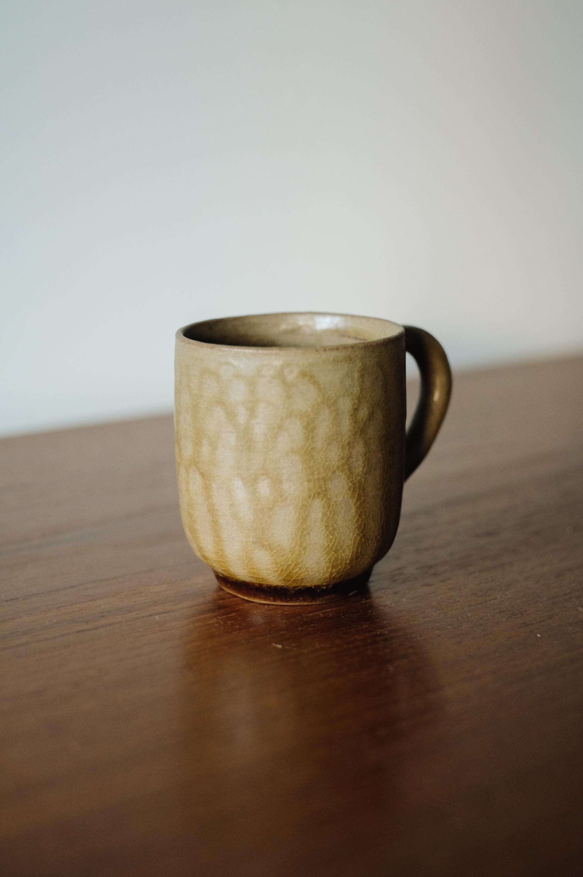 김동표 작가의 작업은 완성된 형태보다, 그 이전의 시간에서 시작됩니다. 작업장 주변과 인연이 닿은 지역에서 흙을 직접 채취하고, 흙의 입자와 모래의 비율, 불에 반응하는 성질을 몸으로 익힌 끝에 하나의 잔이 만들어집니다. 균질하지 않은 흙과 재를 기반으로 한 유약은 소성 과정에서 예측할 수 없는 변화를 만들어내고, 그 결과 표면에는 녹아내린 흔적과 결, 우연한 색의 층이 남습니다. 이 불안정함은 결함이 아니라, 같은 결과를 반복하지 않는 흙과 불의 성질이 남긴 고유한 결과입니다.