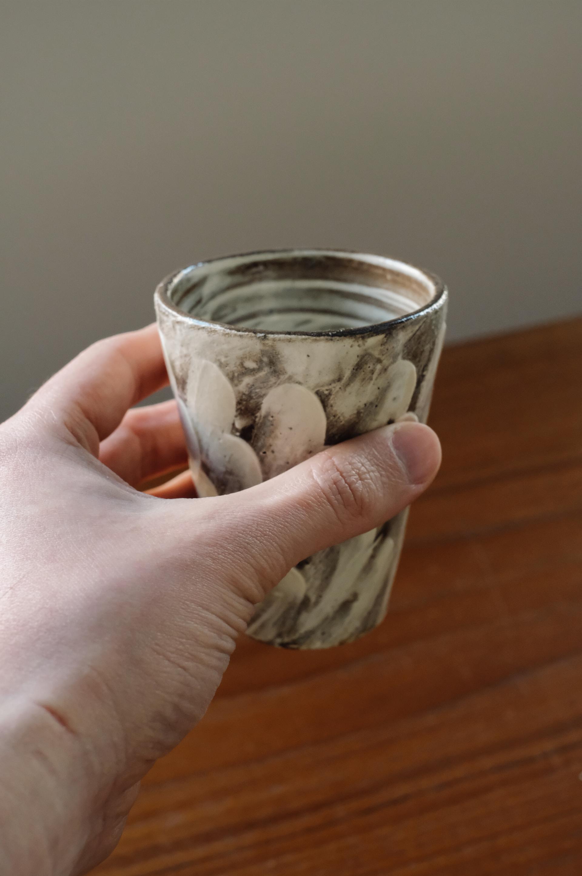 분청의 흐름 위로 더해진 붓의 움직임과 유약의 깊이는 컵마다 다른 리듬을 남기며, 자연의 질감을 닮은 표정을 만들어냅니다.